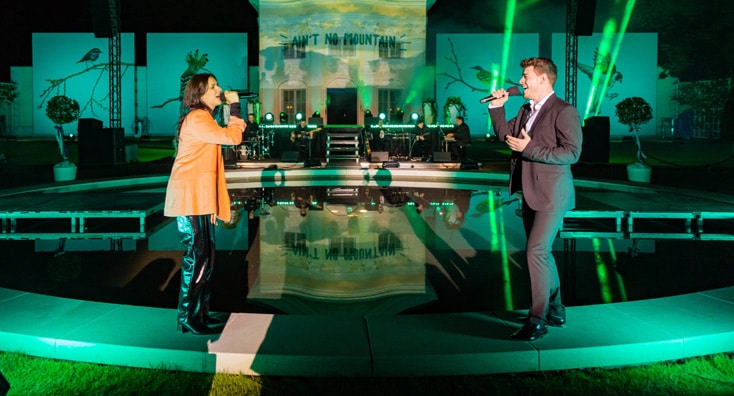 Nach der offiziellen Eröffnung durch Bürgermeister Stefan Szirucsek fand die Abendshow schließlich im Zeichen der Musik statt. Hunderte Besucher:nnen erlebten mit Pavel Singer am Klavier, den Gesangs-SolistInnen Bianca Basler, Marlene Fröhlich, Caroline Hat, Benedikt Solle und Reinwald Kranner, die von der Badener Band "Stereoparty" perfekt begleitet wurden sowie dem Akrobaten-Duo „Love for PEAVE", featuring Ievgeniia Fetkulova & Mikhail Sozonov, für einen atemberaubenden Abend voller Dynamik und mitreißender Musical- und Rock-Hits. Die Tänzer:innen der "Daniela Mackh Dance.Musical.Company" komplettieren schließlich das fulminante Abendprogramm.