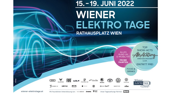 Der Countdown läuft: Von 15. bis 19. Juni 2022 gehen bei freiem Eintritt die Wiener Elektro Tage über die Bühne. Den Besucher:innen wird dabei am Rathausplatz ein umfangreicher Überblick zu aktuellen Elektroauto bzw. E-Zweirad-Neuheiten, modernen Ladelösungen und einem nachhaltigen Lifestyle geboten. Darüber hinaus hat der Veranstalter, die Porsche Media & Creative, zahlreiche Expert:innen für Vorträge und Talkrunden gewonnen, sowie ein Rahmenprogramm mit Festival-Charakter auf die Beine gestellt.