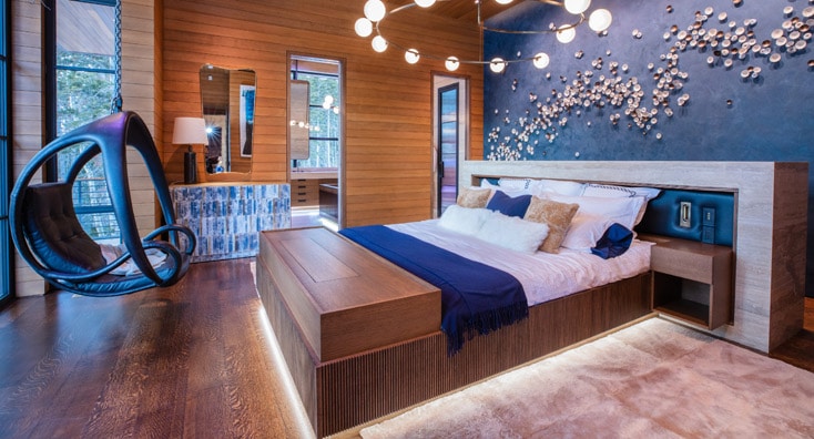 Jedes der sechs Schlafzimmer hat eine individuelle Terrasse inklusive Feuerstelle. Die Haustechnik filtert sowohl das Wasser als auch die Luft und passt die Beleuchtung dem natürlichen Sonnenzyklus an. (ts)