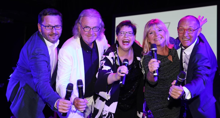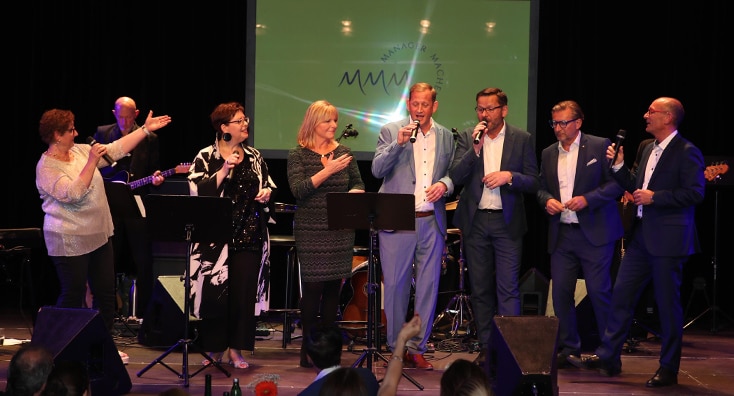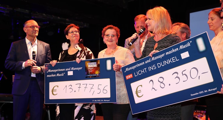 Am 31. Mai konnte "Managerinnen und Manager machen Musik" im Wiener Metropol aber doch noch über die Bühne gehen. Eine ambitionierte Runde an Freund:innen und Wegbegleiter:innen sorgte für einen abwechslungsreichen Abend im Dienste des guten Zwecks, darunter: Peter Kleemann (Flughafen Wien), Susi Wildling (Vamed), Lukas Pohl (Haus der Barmherzigkeit), Manfred Bartalszky (Wiener Städtische Versicherung), Werner Fischl (PremiQaMed), Martina Hacker (ÖBB), Martin Brodey (Dorda Rechtsanwälte), Eva Radinger (Licht ins Dunkel), Vocal Coach Monika Ballwein und Cellist Christoph Stradner.