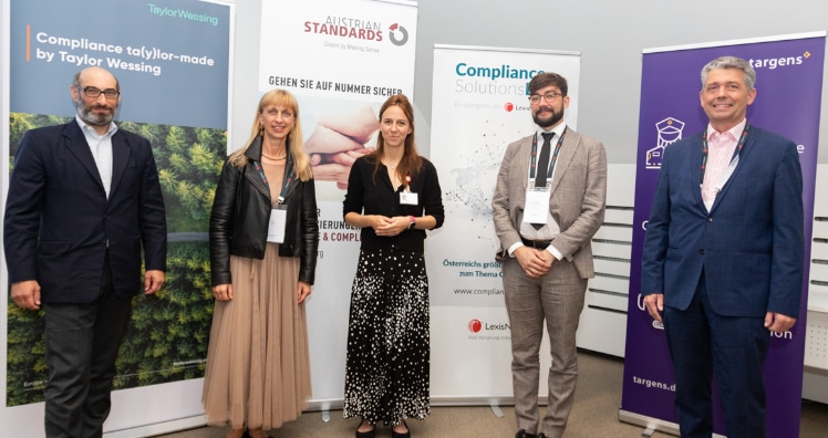 Natalie Atzenberger (LexisNexis) und Eva Steininger (Austrian Standards) konnten rund 50 Interessierte beim 39. Compliance Netzwerktreffen in Wien begrüßen. Im Zentrum der Veranstaltung von Austrian Standards, LexisNexis, targens und Taylor Wessing standen die Themen Sanktionen, Exportkontrolle und Geschäftspartnerprüfung, mit logischen Anknüpfungspunkten zur Geldwäschebekämpfung. Dabei konzentrierte sich das von Martin Eckel moderierte Expertenpanel hauptsächlich auf die pragmatische Bewältigung ganz konkreter Problemstellungen.