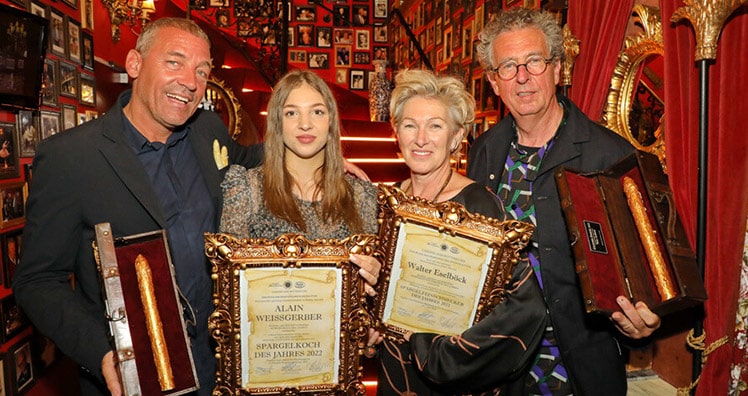 Bundesminister a.D. Werner Fasslabend überreichte den begehrten Goldenen Spargel an den Spargel-Feinschmecker des Jahres Walter Eselböck und würdigte diesen mit einer launigen Laudatio. "Auch ohne der klassischen Kochausbildung hat es der heute 65-jährige geschafft, eines der besten und bekanntesten Restaurants Österreichs zu betreiben", so Fasslabend und ergänzte "Wenn man für eine Sache brennt und seine Ziele niemals aus den Augen lässt, kann man alles schaffen".
