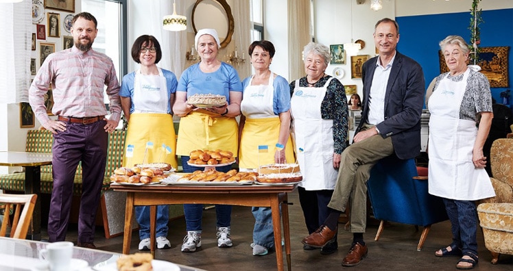 Für die Wiedereröffnung haben sich die Betreiber:innen etwas Besonderes einfallen lassen: sechs ukrainische Senior:innen backen dort nach ihren Familienrezepten - frei nach dem Motto "Integration geht durch den Magen". Die Vollpension schafft seit 2015 Jobs für ältere Menschen, die sich geringfügig etwas zu ihrer Pension dazuverdienen wollen und dabei in Austausch mit jungen Menschen kommen. Nach Ausbruch des Krieges in der Ukraine sei die Idee entstanden, Arbeitsplätze für aus der Ukraine geflüchtete Senior:innen zu schaffen, um so neben finanzieller Unterstützung auch die Inklusion zu fördern, beschreibt Moriz Piffl-Percevic, Co-Gründer der Vollpension, die Pläne hinter dem Konzept.