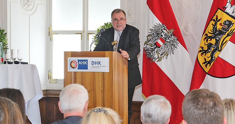 "Gegen Putins Recht des Stärkeren müssen wir uns mit Überzeugung stellen und die Stärke des Rechts verteidigen." Dafür plädierte Siegfried Russwurm kürzlich bei der Matinee der Deutschen Handelskammer (DHK) in Österreich. Der Präsident des Bundesverbands der Deutschen Industrie (BDI) entwarf in seiner Festrede ein Zukunftsszenario für Europas Wirtschaft. Siegfried Russwurm trat für neue globale Partnerschaften in einem Europa ohne Russland ein.