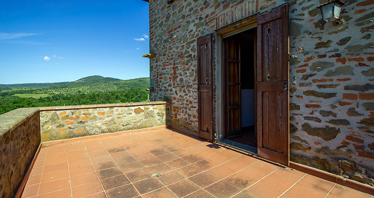 Durch die wunderschöne großzügige Terrasse wird man mit einer außergewöhnlichen pittoresken und weitläufigen Sicht auf die typische Hügellandschaft Umbriens und der Toskana verzaubert. Die Ziegeldecken ruhen auf soliden, frei sichtbaren Holzbalken. Für die Böden wurden je nach Erfordernis Parketthölzer oder Fliesen des Typs "cotto fiorentino" gewählt. Auch die Dacheindeckung hat Tradition: "Mönch und Nonne", jedem bekannt, der schon auf den Stadtturm von Siena geklettert ist.