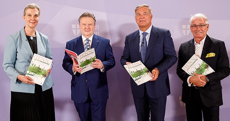 Neben dem Wirtschaftskammer Wien-Präsident und dem Bürgermeister waren bei der Präsentation auch Karin Zipperer, Geschäftsführerin des Verkehrsverbundes Ost-Region (VOR) und Georg Pölzl, CEO der Österreichischen Post AG, dabei. Der Report umfasst eine Analyse der Standortanwaltschaft in der WK Wien zu aktuellen und geplanten kommunalen und privatwirtschaftlichen Projekten am Standort Wien in den Bereichen Verkehr, Energie, Kreislaufwirtschaft und Immobilien.