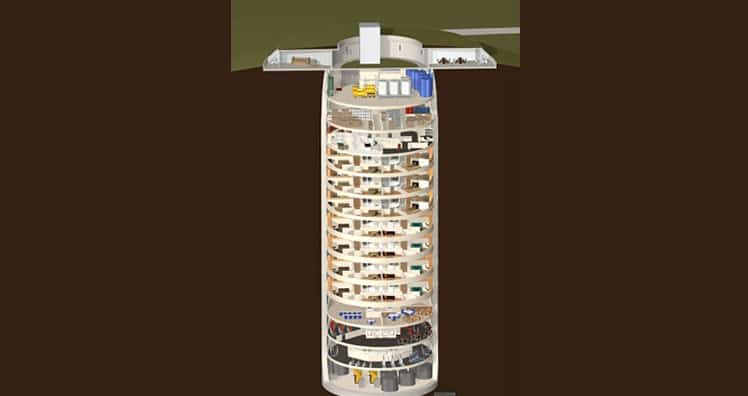 Auf tausenden Quadratmetern, verteilt auf über 15 Ebenen, gibt es in zwei stillgelegten Raketensilos alles was man sich wünschen kann. Vom Klassenzimmer, Supermarkt, Kino, Erste-Hilfe Zentrum bis zum Theater findet man in dem Bunker beinahe jede Möglichkeit, um die Apokalypse so angenehm wie möglich zu überdauern. Die interne Wasserversorgung ist in der Lage, bis zu 340.000 Liter zu speichern.