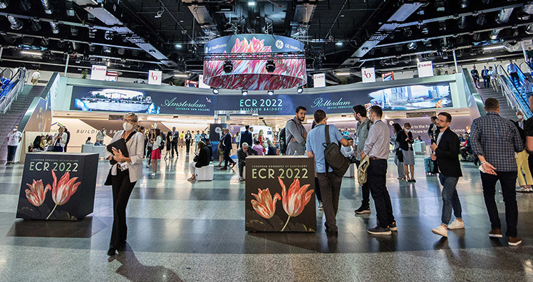 Peter Baierl von der European Society of Radiology (ESR) präsentierte sein Konzept für eine engere Vernetzung von Industrie und Wissenschaft gepaart mit Netzwerk-Bereichen. Die Industrie bekommt so ganze Bereiche des Hauses direkt neben den Vortragsräumen, um so ganz eng verwoben zu sein. Der ECR geht daher weg von großen Hallen, in denen Stand an Stand steht, hin zu exklusiven Brand-Erlebniswelten, in denen der Erlebnisfaktor und das Produkt selbst im Vordergrund stehen. Genau dafür bietet das Austria Center Vienna durch die Kombination aus Sälen und Foyers, die mit Cateringstationen und angrenzenden Terrassen ausgestattet sind, ideale Gestaltungsmöglichkeiten.