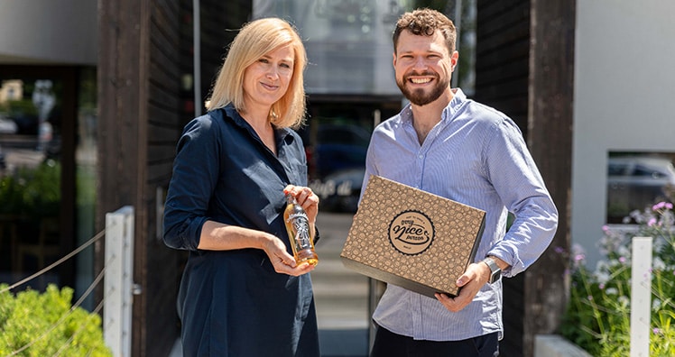 Valentin Berger, Online Marketing Manager von Almdudler: "Bisher haben wir Onlinebestellungen individuell abgewickelt. Durch eine automatische Schnittstelle zum Logistiknetzwerk von niceshops können wir jetzt unsere Privatkund:innen viel effizienter und professioneller bedienen und neue Märkte in Europa erschließen." Das ergibt nicht nur in wirtschaftlicher Hinsicht eine Win-Win-Situation, ist Nicole Stenekes, Leiterin des E-Commerce-Services von niceshops, überzeugt: "Wir nutzen für beide Seiten gewinnbringende Synergien und gehen auch in unserer Verantwortung für Umwelt und Gesellschaft gemeinsame Wege." Beide Unternehmen verwenden zu 100 Prozent Ökostrom und setzen viele ökologische und soziale Projekte um. Almdudler unterstützt beispielsweise Initiativen des Österreichischen Alpenvereins und der Caritas. Niceshops wirtschaftet seit 2018 klimaneutral und verwendet u. a. patentierte, plastikfreie Versandkartons.