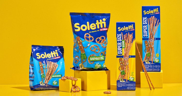 Trotz der anhaltenden Beliebtheit – Soletti-Snacks werden seit über 70 Jahren im südoststeirischen Feldbach hergestellt – ist nun die Zeit für eine Neuerung gekommen. Diese betrifft aber nicht das Produkt selbst. Gemeinsam mit der Agentur Pfeil wurden die Packungen der Soletti-Salzstangerl, SuperSize und Babybrezel neu gestaltet, und auch der Markenbotschafter "Joe Soletti" wurde etwas modernisiert und in neues Gewand gepackt.