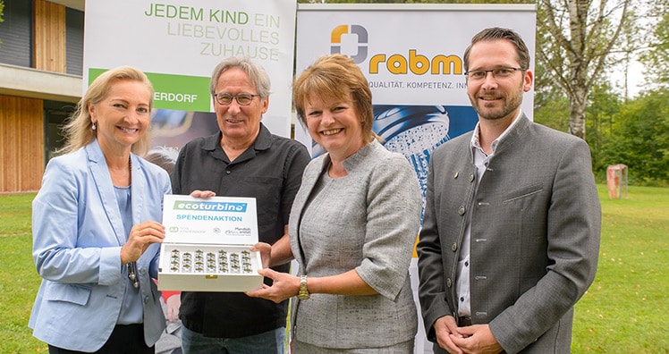 Im Rahmen einer Spendenaktion statten die Pfandleihanstalt Erika Martetschläger GesmbH und die Rabmer Gruppe daher alle SOS-Kinderdörfer in Österreich mit dem Ecoturbino Wasser- und Energiesparsystem aus. In zwei Drittel der Einrichtungen seien die Geräte bereits installiert worden, die Übergabe der letzten Tranche erfolgte jetzt am 23. August im SOS-Kinderdorf Altmünster.