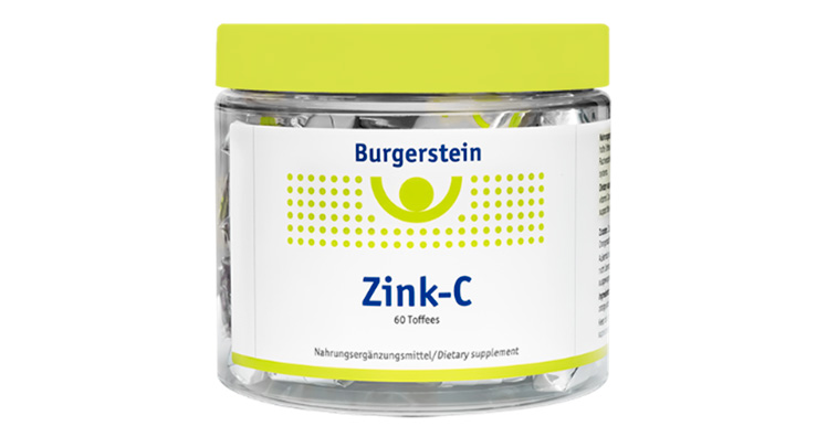 "Zink-C Toffees" von Burgerstein, Schweizer Mikronährstoff-Qualität seit 50 Jahren, gibt es in der Apotheke (30 oder 60 Stück) – natürlich rezeptfrei.