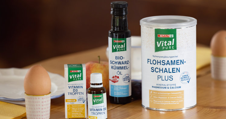 Die ersten Produkte, die unter der neuen Marke bei Eurospar und Interspar in die Regale kommen, sind Vitamin D3 Tropfen, Flohsamenschalen Plus, Bio-Aloe Vera Saft und Bio-Schwarzkümmelöl. Bis Anfang 2023 sollen insgesamt rund zehn Produkte unter "Vital Pure" erhältlich sein. Bei der Entwicklung der Nahrungsergänzungsmittel hat Spar mit dem Mediziner Markus Metka zusammengearbeitet.