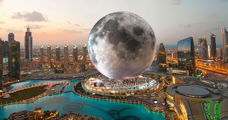 Beim harten Kampf um Kund:innen setzen viele Hotelbetreiber seit Jahrzehnten auf spektakuläre Architektur oder Superlative wie den höchsten Infinity Pool oder die größte Suite der Welt. Bei der äußeren Gestaltung könnte es in absehbarer Zeit ein neues Highlight geben. Das kanadische Architekturbüro "Moon World Resorts Inc." hat nämlich Pläne veröffentlicht, die ein riesiges Hotelresort in Mondform zeigen.