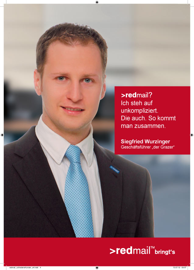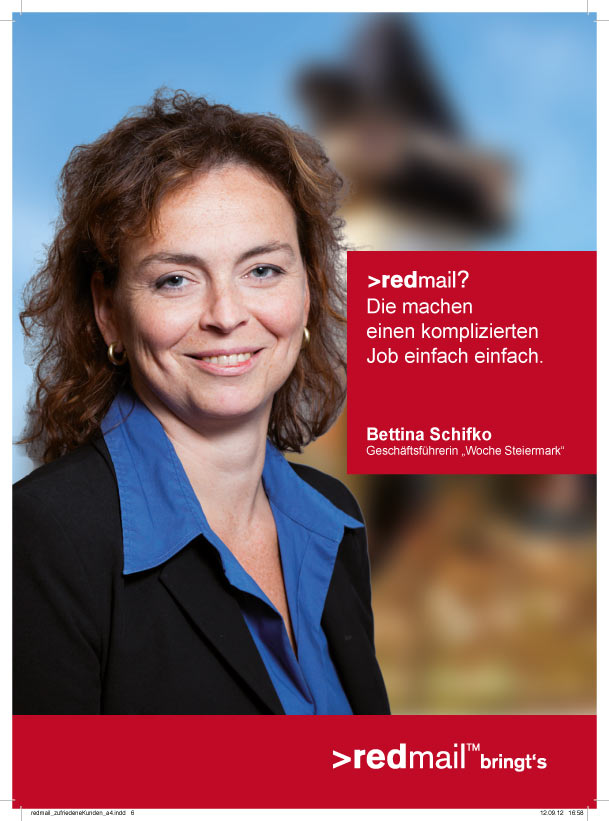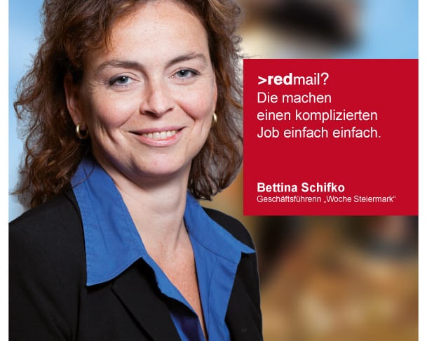 „Ich steh auf unkompliziert. Die auch. So kommt man zusammen“, unterstreicht Siegfried Wurzinger, Geschäftsführer „der Grazer“. Bettina Schifko, Geschäftsführerin „WOCHE Steiermark“ über die Zusammenarbeit mit der >redmail: „Die machen einen komplizierten Job einfach einfach.“