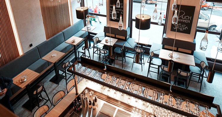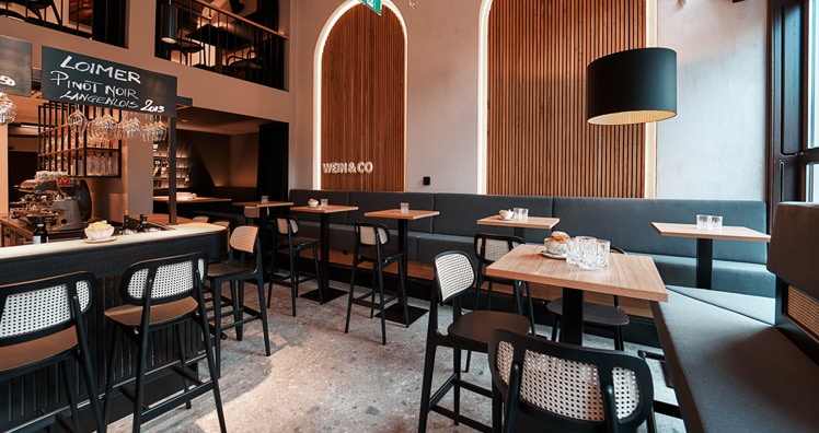 Der nun moderner gestaltete Weinbar-Bereich gliedert sich in drei Teile und erstreckt sich auf einer Fläche von insgesamt 130 Quadratmetern über zwei Stockwerke. Mit 50 Sitzplätzen bietet der umgestaltete Barbereich mehr Raum für Gäste. Der Wein & Co Shop inklusive Fachberatung und Verkostungszone erstreckt sich über eine Fläche von 180 Quadratmetern im Erdgeschoß des renovierten Standortes. Hier ziehen vor allem zwei gekühlte Ikonen-Regale die Blicke auf sich. Im barrierefrei nutzbaren Obergeschoß erwartet Besucher:innen neben einer Wine Lounge auch ein Eventbereich für Veranstaltungen und Workshops, der auch für private Feiern gebucht werden kann.