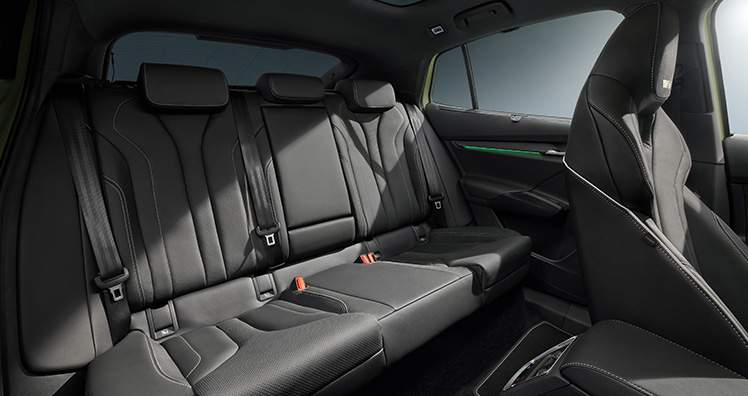 Durch seinen langen Radstand bietet das ENYAQ COUPÉ RS iV großzügige Platzverhältnisse für fünf Personen. Der 570 Liter große Kofferraum lässt sich auf Wunsch mit einer elektrischen Heckklappe auch per Fußschwenk über das Virtual Pedal unterhalb der Heckschürze öffnen und dank einer niedrigen Ladekante bequem beladen.