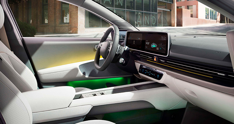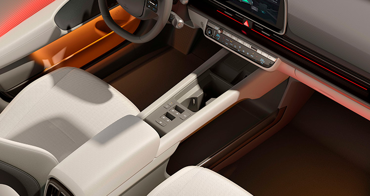Auch bei den verwendeten Materialien ist der IONIQ 6 ebenso nachhaltig wie der IONIQ 5. Nachhaltigkeit steht im Mittelpunkt der IONIQ Markenvision, die sich im gesamten IONIQ 6 in umweltfreundlichen Materialien und Farben wiederfindet. In vielen Bereichen des Innenraums – bei Sitzen, Dachhimmel, Türverkleidungen, Fußboden und Armlehnen - werden umweltfreundliche, nachhaltig gewonnene Materialien verwendet, wie z.B. recycelte PET-Flaschen und Garne auf Pflanzenbasis (Bio-PET) sowie Garne aus natürlicher Wolle, ökologisch verarbeitetes Leder mit Pflanzenextrakten und Bio-Lack mit Pflanzenextrakten.