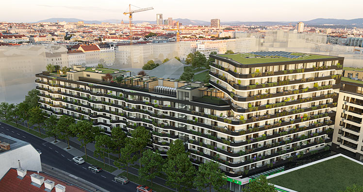 "Deck Zehn" befindet sich in unmittelbarer Nähe des Wiener Hauptbahnhofs und biete mit Ein- bis Vierzimmerwohnungen von 37 bis 99 Quadratmetern perfekte Bedingungen für jede Lebenssituation, ist man bei der Buwog überzeugt. Alle 229 der von BKK3-Architekten geplanten Wohnungen sind mit Freiflächen ausgestattet. Highlight sei aber die Dachterrasse des 11-geschossigen Projekts: Dort genießen die künftigen Bewohner:innen nicht nur einen beeindruckenden Rundumblick über die Stadt, sondern haben zudem die Möglichkeit, Urban-Gardening-Flächen zu nutzen, in der offenen Küche BBQ-Feste mit Nachbar:innen, Familie und Freund.innen zu feiern oder im eigens eingerichtetem Yoga-Bereich zu entspannen.