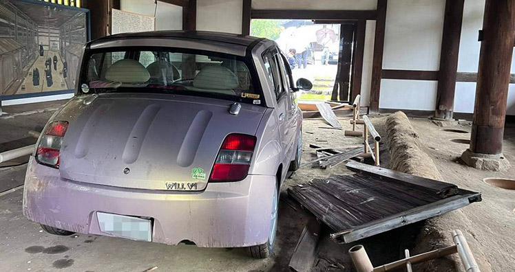 Bei dem Unfallfahrer handelt es sich ausgerechnet um einen Mitarbeiter der Kyoto-Gesellschaft für die Erhaltung der antiken Kulturen, einer Organisation zur Erhaltung von Kulturdenkmälern. Eine rund zwei Meter hohe Doppeltür und Innensäulen wurden bei dem Unfall, bei dem der Mann offenbar den Rückwärts- statt dem Vorwärtsgang eingelegt hat, beschädigt.
