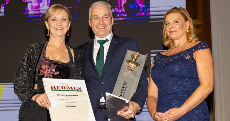 Das Retter Bio-Natur-Resort rund um die Inhaber:innen Ulrike und Hermann Retter, holte sich mit dem "Hermes" in der Kategorie Klimaschutz, den bereits zweiten Preis innerhalb kurzer Zeit. Vor einigen Tagen wurde das Hotel in der Steiermark zum 19. Mal als "Bestes Seminarhotel Österreichs" ausgezeichnet.