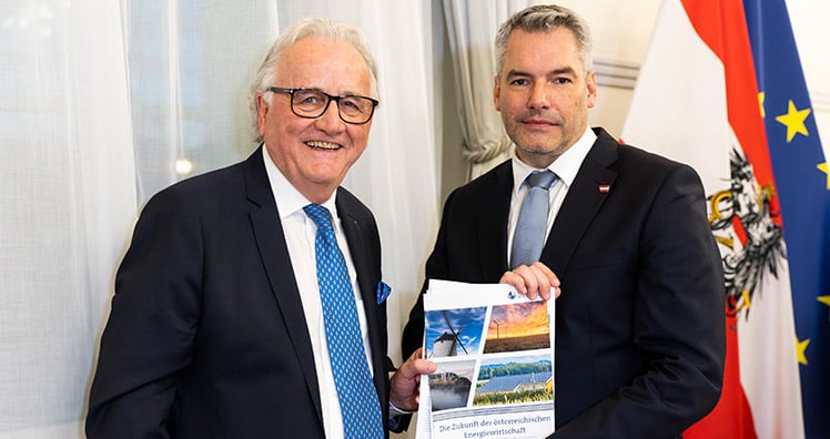 Zum Schluss übergab Hans Harrer, Vorstandsvorsitzender im Senat der Wirtschaft, Nehammer einen Auszug aus den "Senats-Plädoyers", wo Lösungen zu unterschiedlichen Themen von Experten aus der Praxis ausgearbeitet wurden, und betonte gleichzeitig die Bereitschaft der mittelständischen Unternehmen im Senat, der Politik ein konstruktiver Partner:innen zu sein und Mitgestalter für eine enkeltaugliche Zukunft.