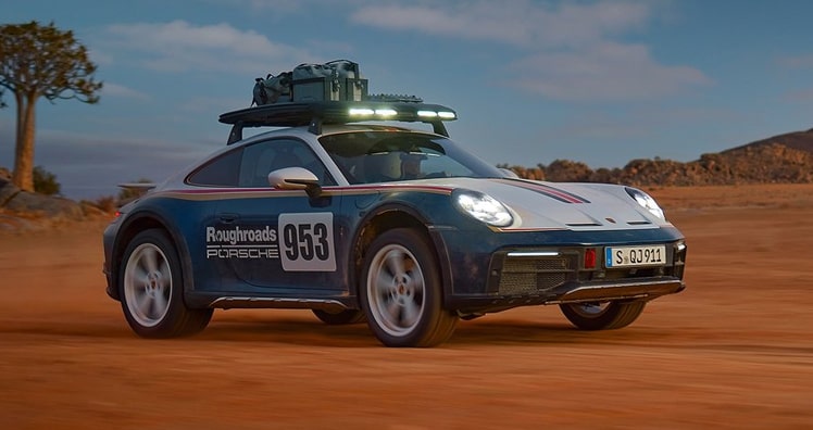 Wie eingangs erwähnt, wird optional ein Rallye Design Paket der Porsche Exclusive Manufaktur angeboten. Dessen Highlight ist eine Zweifarblackierung in Weiß/Enzianblaumetallic. Hier setzt die Marke erstmals die Kombination aus Bi-Color-Lackierung und Dekorfolierung in Serie um. Auf der Fahrzeugflanke können die Kund:innen eine individuelle Startnummer zwischen "0" und "999" wählen. Neben den Rallyestreifen in Rot und Gold trägt der 911 Dakar mit Rallye Design Paket, dessen Optik an das Siegerfahrzeug der Rallye Paris-Dakar 1984 angelehnt ist, auch den Schriftzug "Roughroads" auf den Türen sowie weiß lackierte Felgen.