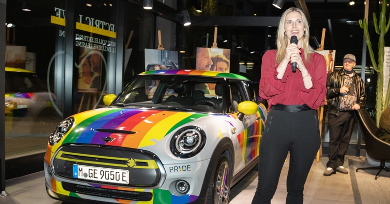 Als Special Guest war der sogenannte "MINI Pride" mit dabei. Das in Regenbogenfarben lackierte Unikat wird von Land zu Land herumgereicht und sorgte bei den Besucher:innen des Afterwork Clubbings für Furore. "MINI zeichnet natürlich dieses Individuelle aus. Wir können wirklich alles spielen und haben ganz viele Sondermodelle. Da findet jeder den passenden Deckel zu seinem Topf", so Katharina Altrichter, Verkaufsleiterin Neuwagen der BMW Group Niederlassung Wien, gegenüber LEADERSNET.tv.