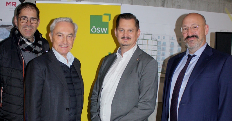 V.l.n.r.: Sascha Risavy, Michael Pech, Marcus Franz und Markus Fichta bei der Gleichenfeier © ÖSW