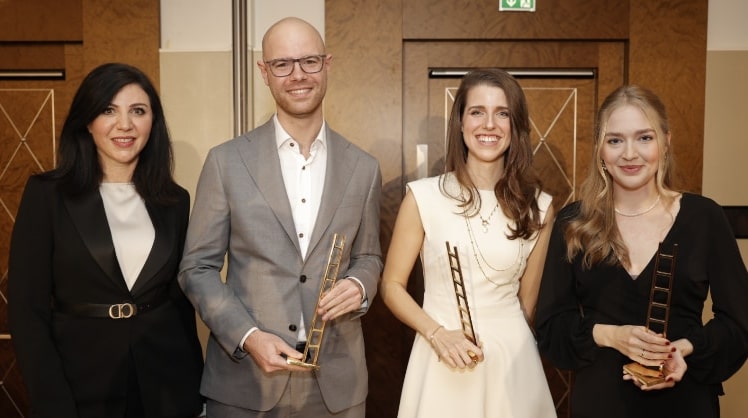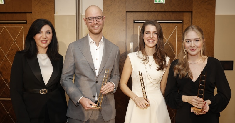 Sieger:innen sind Lukas Rendl, Head of Health claims and claims process management bei Generali Versicherung, Karina Schunker, Geschäftsführerin bei EHL Wohnen GmbH und Silvia Bauer, CFO - Director Finance and Administration bei GfK.