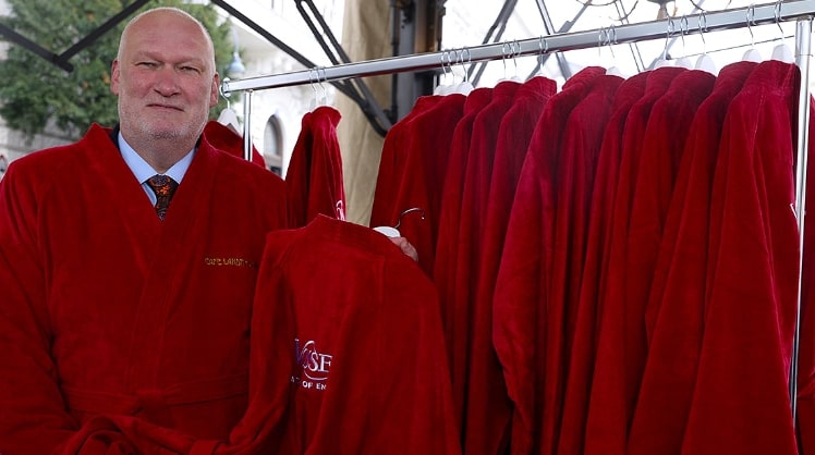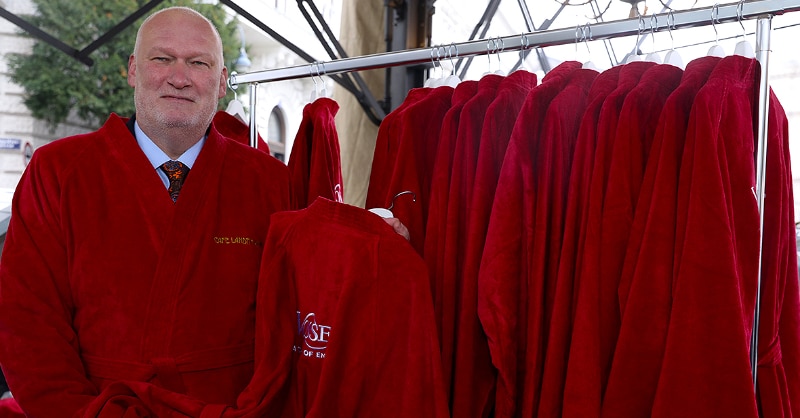 Um der aktuellen Energiekrise auf nachhaltige Weise zu begegnen, hat sich Berndt Querfeld etwas Neues einfallen lassen. In dieser Wintersaison heißt es "kuscheln statt heizen" und zwar in Frottee-Bademänteln des österreichischen Unternehmens Vossen.