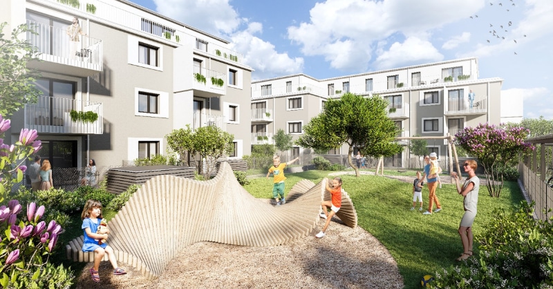 Innenhof mit Kinderspielplatz © Architekturbüro Einfach3