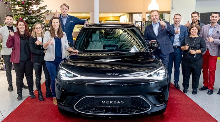 "Ich freue mich sehr, mit dem neuen smart #1 schon bald ein weiteres Premium-Produkt im Portfolio haben, das als kompakter SUV rein elektrisch mit frischem, tollem Design perfekt den Zeitgeist trifft.", so Merbag-Geschäftsführer Martin Heger.