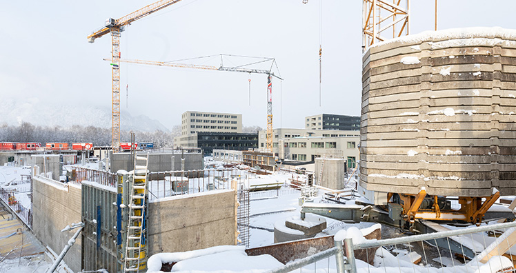 Die Bauarbeiten sind bereits in vollem Gange und am Montag, 12. Dezember 2022 fand der symbolische "Spatenstich" für die beiden letzten Bauteile statt. Mit dabei sind unter anderem der Salzburger Landeshauptmann Dr. Wilfried Haslauer, der Pucher Bürgermeister Helmut Klose, FH-Geschäftsführer Dr. Dominik Engel, Ehrenprofessor der FH Salzburg Dr. Wolfgang Gmachl, KR Franz Stiller von der SAPEG, DI Christian Struber vom Hilfswerk und UKO Geschäftsführer Moritz Unterkofler. "Diese Investitionen stärken gerade in der aktuell schwierigen Zeit den Salzburger Wirtschafts- und Forschungsstandort. Mit der Fachhochschule als direktem Nachbar bieten sich für innovative Unternehmen einzigartige wirtschaftliche Rahmenbedingungen", betont Landeshauptmann Dr. Wilfried Haslauer.