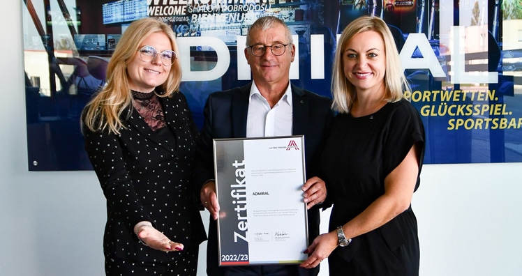 Darüber hinaus wurde ADMIRAL kürzlich durch „Leitbetriebe Austria“ der Status als österreichischer Leitbetrieb erneut bestätigt. Wesentlich für die Verleihung sind die gelebte soziale und ökologische Verantwortung, der nachhaltige Unternehmenserfolg, die Bedeutung für den Wirtschaftsstandort Österreich und die Bereitschaft zum Erfahrungsaustausch und zur Kooperation mit anderen Betrieben. „ADMIRAL investiert sehr viel Zeit und Geld, um ihre soziale Verantwortung wahrzunehmen. Das Unternehmen ist europaweit ein Benchmark im Bereich des Spielerschutzes“, erklärte Leitbetriebe Austria-Geschäftsführerin Monica Rintersbacher bei der Verleihung im ADMIRAL-Headquarter in Wiener Neudorf.