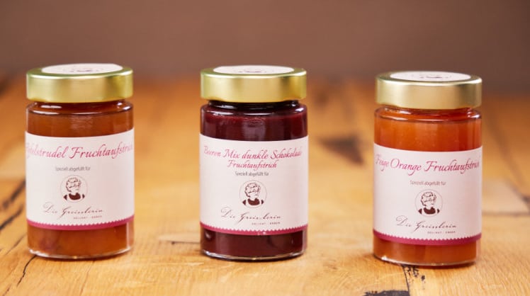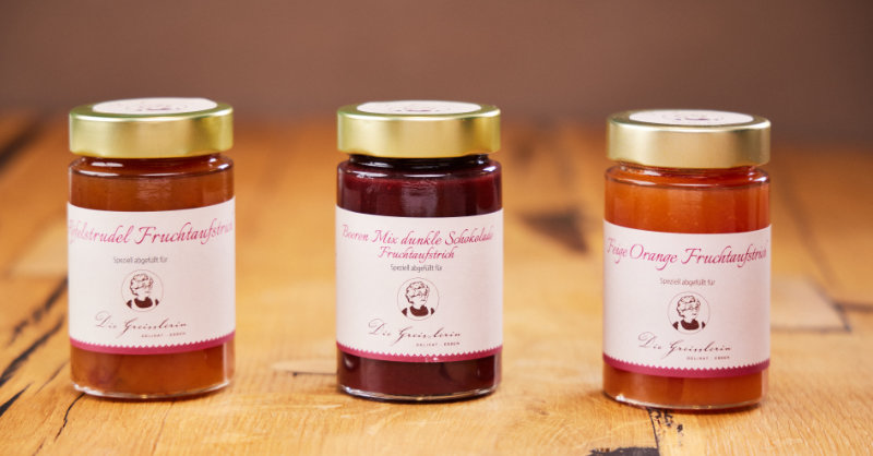Im Sortiment der "Greisslerin" befinden sich Fruchtaufstriche in Geschmacksrichtungen wie Apfelstrudel oder ein Feige-Orange. Aber auch diverse Chutneys (z.B.: Paprika und Apfelessig), klassische Marmeladen, Liköre sowie ein Pistazienpanettone fallen in die Produktriege.