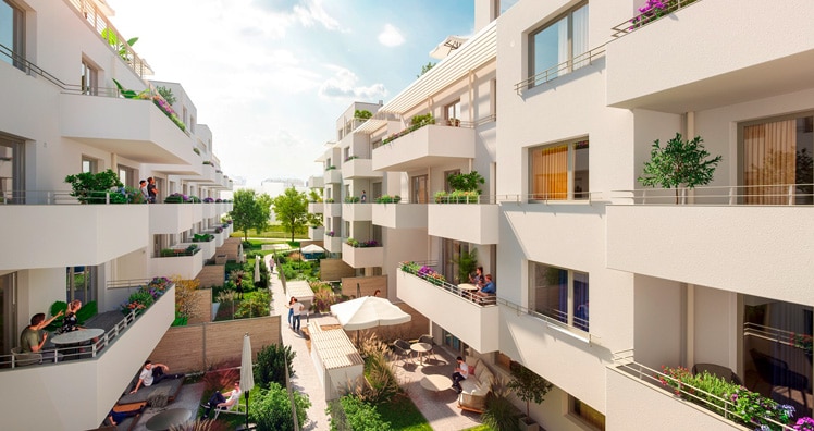 Das in unmittelbarer Nähe des Wiener Hauptbahnhofs entstehende DECK ZEHN bietet perfekte Bedingungen für jede Lebenssituation. Alle 229 der von BKK3-Architekten geplanten Eigentumswohnungen sind mit Freiflächen ausgestattet, besonderes Highlight ist aber die Dachterrasse des 11-geschossigen Projekts: Dort genießen die künftigen Bewohner:innen nicht nur einen beeindruckenden Rundumblick über die Stadt, sondern haben zudem die Möglichkeit, Urban-Gardening-Flächen zu nutzen, in der offenen Küche BBQ-Feste mit Nachbarn, Familie und Freunden zu feiern oder im eigens eingerichtetem Yoga-Bereich zu entspannen. Darüber hinaus stehen den Bewohner:innen ein Saunabereich und eine Outdoor-Fitnesszone zur Verfügung. Ein Co-Working-Space erfüllt alle Home-Office-Anforderungen und schafft damit die Möglichkeit, Wohnen und Arbeiten auch Zuhause räumlich zu trennen. Das Projekt bietet mit dem Hauptbahnhof (mehrere S-Bahn-, Straßenbahn- und Buslinien sowie Fernzüge) eine optimale öffentliche Verkehrsanbindung, zudem steht eine hauseigene Tiefgarage mit PKW-Stellplätzen zur Verfügung. Die Fertigstellung ist für Herbst 2023 vorgesehen.