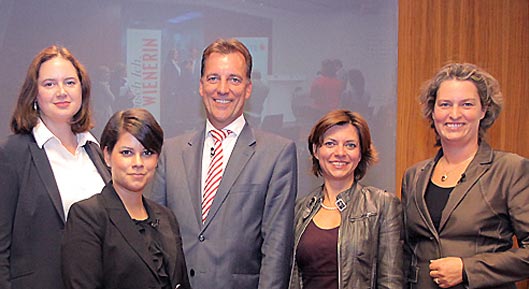 So lautete die Frage bei der zweiten WIENERIN ERSTE BANK LOUNGE über den Dächern Wiens am Petersplatz. Für Sabine Mlnarsky-Bständig, Leiterin Personalmanagement der Erste Bank, sind vor allem Rollenbilder ausschlaggebend für den Anspruch auf Karriere, was sie auch mit einer selbst im Unternehmen durchgeführten Studie belegen kann. Wichtig für Frauen sei allerdings auch, greifbare Vorbilder zu haben und den menschlichen Faktor mit einzubeziehen. Unternehmensberaterin und Coach Magda Bleckmann ergänzt dazu: "Auch das Netzwerken nach oben ist wichtig." Ihre goldene Regel heißt: "Ich muss für andere einen Nutzen bieten." Dass Karriere etwas sehr Individuelles ist, darüber waren sich alle einig. Markus Brenner, Geschäftsführer von Brenner & Company Intl. Management Consulting, beschrieb eine neue Metapher für die altbekannte "Karriereleiter": "Karriere ist heutzutage eher eine gemeinsame Bergwanderung, in der es Höhen und Tiefen zu überwinden gibt, bevor man den Gipfel erklimmt.“