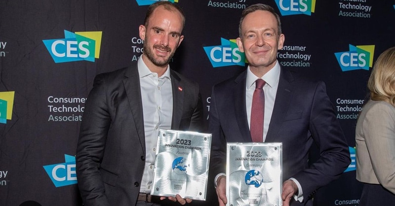Für Österreich selbst hat sich der Auftritt in Las Vegas jedenfalls gelohnt. Denn Digitalisierungsstaatssekretär Florian Tursky (ÖVP), der den heimischen Stand offiziell eröffnet hat, durfte die Auszeichnung Innovations-Champion entgegennehmen. Diese Auszeichnung ging an 24 der 70 teilnehmenden Länder. Von diesen durften wiederum nur die besten zwölf auf die Bühne – Österreich, durch Tursky vertreten, war dabei. Er nahm die Urkunde u.a. gemeinsam mit dem deutschen Bundesminister für Verkehr und digitale Infrastruktur, Volker Wissing, entgegen. Nach der feierlichen Übergabe hielt CES-Chef Gary Shapiro eine Rede.