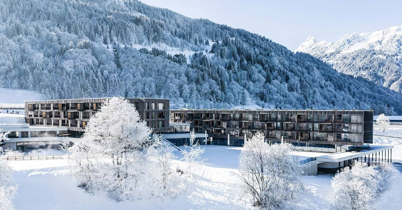 Neben den Gästen wurde auch an die Mitarbeiter:innen gedacht. Für sie wurden zwei eigene Häuser gebaut, die in Gehweite zum Hotel liegen und über 50 voll eingerichtete Appartements in Holzbauweise, einen Fitnessbereich, einen eigenen Ski-In, direkte Anbindung an Wanderwege sowie einen Panoramablick aus allen Zimmern verfügen.