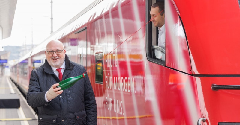 Zum Start ins Jubiläumsjahr wurde ein siebenteiliger Zug offiziell "getauft" und auf Reise geschickt. Den Railjet zieren "100 Gründe um für die ÖBB zu arbeiten". Diese Gründe kommen aus dem Team des Konzerns, von 100 ÖBB-Mitarbeiter:innen aus ganz unterschiedlichen Berufen. Von Triebfahrzeugführer:innen, über IT-Expert:innen bis zu Verschub-Mitarbeiter:innen. Sie alle wollen die Fahrgäste einladen, auch beruflich bei den ÖBB einzusteigen.