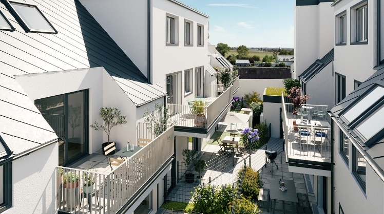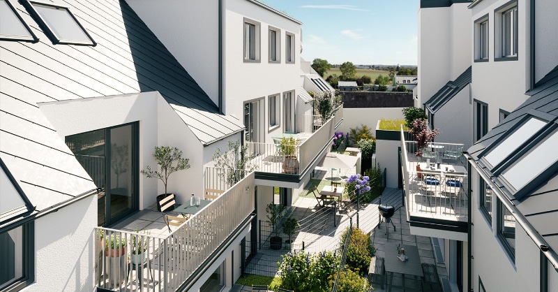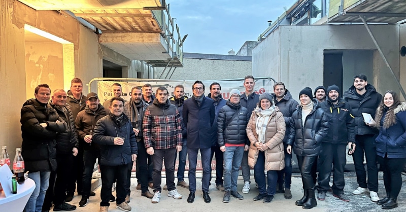 Markus Brandstätter, Rustler Gesellschafter (in der Mitte) mit Vertreter:innen der Baufirmen und Gewerken bei der Dachgleiche © Rustler