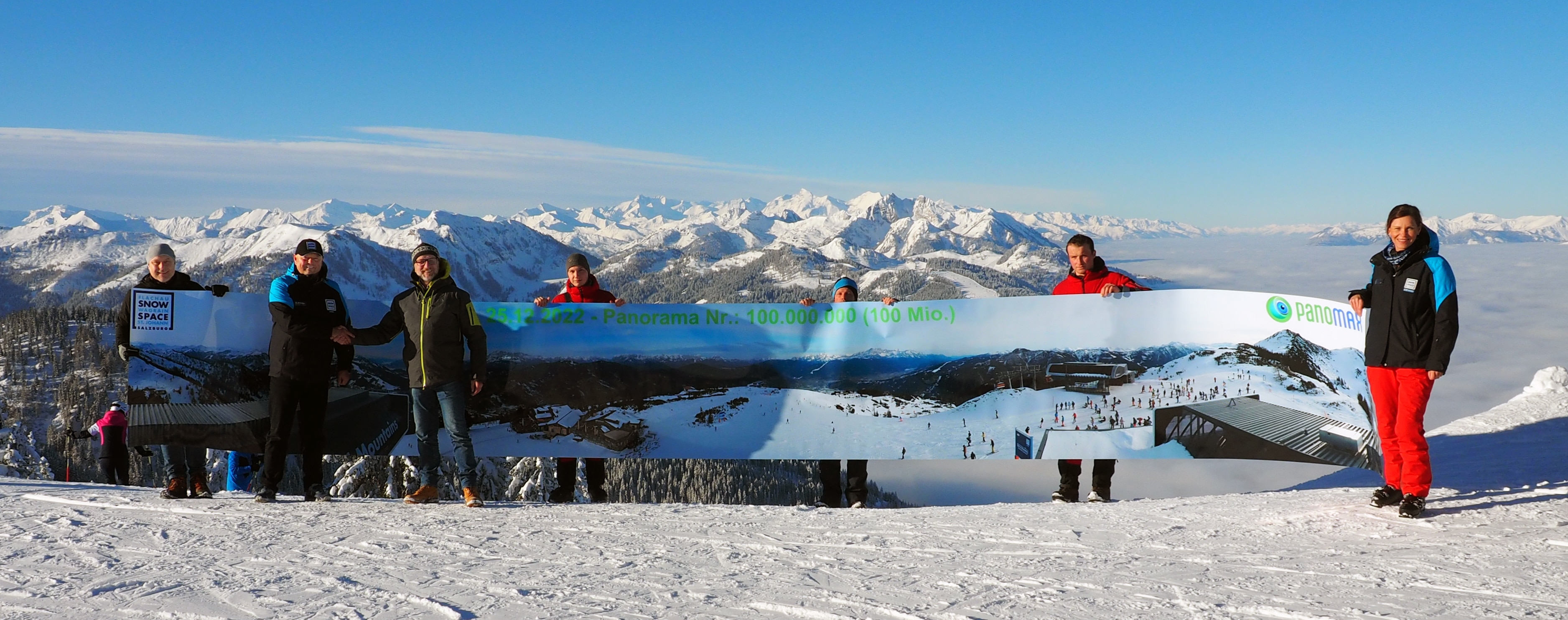Das hundertmillionste Panorama-Bild wurde unterhalb des Grießenkars vom Dach der "Flying Mozart"-Bergstation in Wagrain gemacht, also in der Heimat des Salzburger Unternehmens. Am 26. Dezember 2022 wurde ein 360-Grad-Bild der Pongauer Berglandschaft an die Server in Henndorf übermittelt. Firmengründer und Inhaber Klaus Mairinger nahm das nun zum Anlass, um das entsprechende Bild großformatig auszudrucken und dieses neun Meter lange und 1,12 Meter hohe Foto der Bergbahnen-Geschäftsführung zu überreichen.