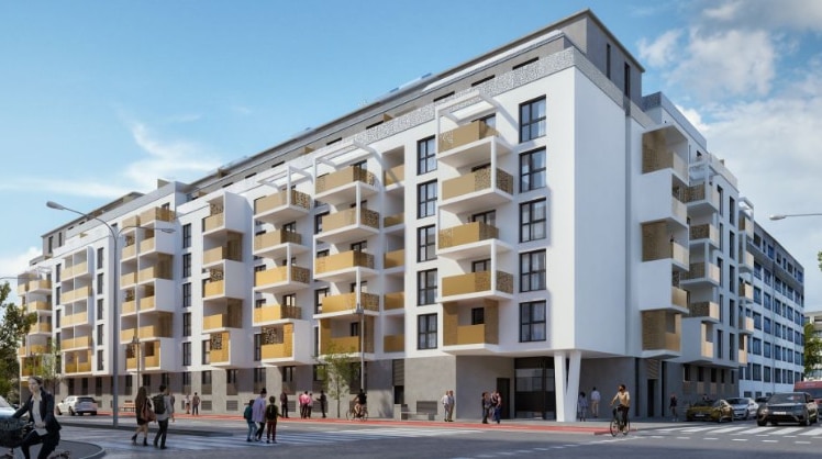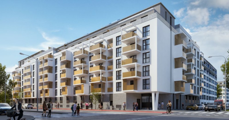 V.l.n.r.: Gerhard Maier, Swieteslky BaugesmbH, Manfred Kräftner, BIP Immobilien Development GmbH, Bettina Breiteneder, BIP Immobilien Development GmbH und Ernst Nevrivy, Bezirksvorsteher Donaustadt bei der Gleichenfeier © BIP Immobilien