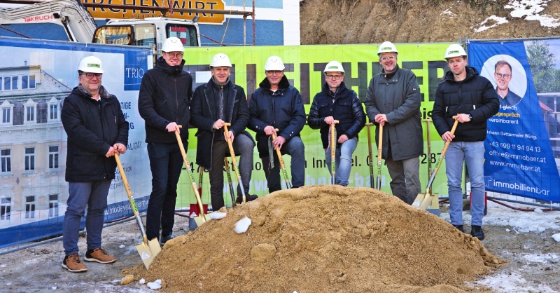 Mit dem Spatenstich ist der Startschuss für das neue Wohnbauprojekt im Ortszentrum von Taiskirchen im Bezirk Ried im Innkreis (OÖ) erfolgt. Insgesamt sollen im ehemaligen Gasthof zwölf Mietwohnungen und auf dem gleichen Areal ein Neubau mit acht Eigentumswohnungen gebaut werden. Das Nutzungskonzept hat das Trio Development aus Thalheim bei Wels entwickelt.