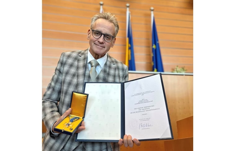 In einem Festakt im Niederösterreichischen Landhaus im großen Sitzungssaal erhielt Verleger Christian W. Mucha am Mittwoch von Landeshauptfrau Johanna Mikl-Leitner das Goldene Verdienstzeichen für das Land Niederösterreich verliehen.