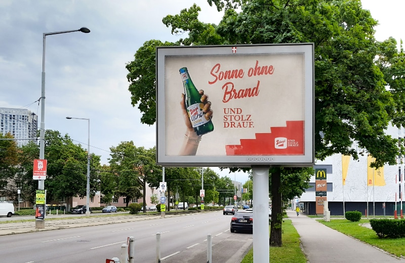 Für Birgit Grammelhofer, Media- und Kampagnen Managerin Stiegl, spricht vor allem die Vielseitigkeit der Premium Boards für eine Bewerbung der eigenen Produkte: "Aus besten Zutaten und echter Brauhandwerkskunst brauen wir in der Stieglbrauerei köstliche Biere auf höchster Stufe. Und genau dort, auf höchster Stufe, wird unsere vielseitige Produktpalette über die Premium Boards perfekt präsentiert."