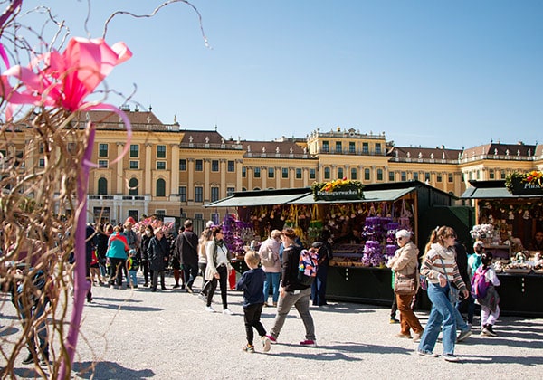 Bei vorgezogenem Aprilwetter sorgte der Ostermarkt Schloss Schönbrunn die Besucher:innen am Eröffnungstag mit einem bunten Rahmenprogramm für Osterstimmung.