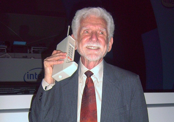 Der Motorola-Ingenieur Martin Cooper nutzte für den ersten Anruf ein knapp ein Kilogramm schweres Gerät und tippte eine Nummer auf der Straße in den Zahlenblock. Passant:innen sollen ihn damals irritiert angesehen haben, erzählt Cooper heute. "Hi, Joel. Ich rufe dich von einem Mobiltelefon aus an. Aber ein richtiges Mobiltelefon. Ein persönliches, tragbares Mobiltelefon", waren übrigens die ersten Sätze die jemals von einem Mobilfunkgerät aus fielen.