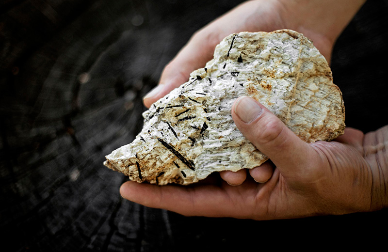 Einige Jahre später ging Martin Oertel, seines Zeichens auch Bergbauingenieur, gezielt Hinweisen nach, dass im Terroir der Winzer Turmalin zu finden sei. Er wurde schnell fündig, als er mit einem Bergmannshammer größere Steine im Boden des Weinbergs der Familie Rothschädl zerschlug: Turmalin in Hülle und Fülle, in Nadelform und in Form von größeren Kristallen.